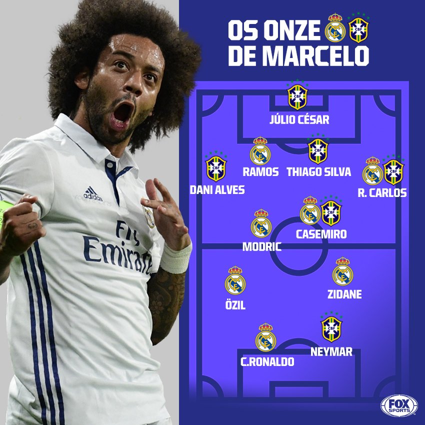 Em equipe que conta com atletas como Cristiano Ronaldo, Neymar e Zidane, Marcelo elegeu Julio Cesar como goleiro do esquadrão. Vale ressaltar que o lateral teve Casillas, um dos maiores goleiros do futebol mundial na década, como companheiro de equipe. Logo, a disputa foi acirrada para o camisa 12 do Fla.